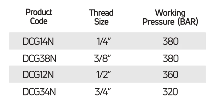 1/2" BSP, 1/4" BSP, 3/4" BSP, 3/8" BSP