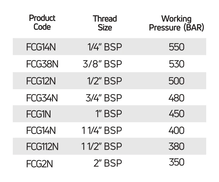 1" BSP, 1/2" BSP, 1/4" BSP, 11/2" BSP, 11/4" BSP, 2" BSP, 3/4" BSP, 3/8" BSP