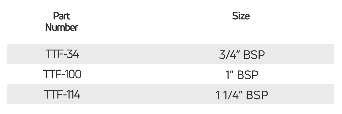 1" BSP, 11/4" BSP, 3/4" BSP